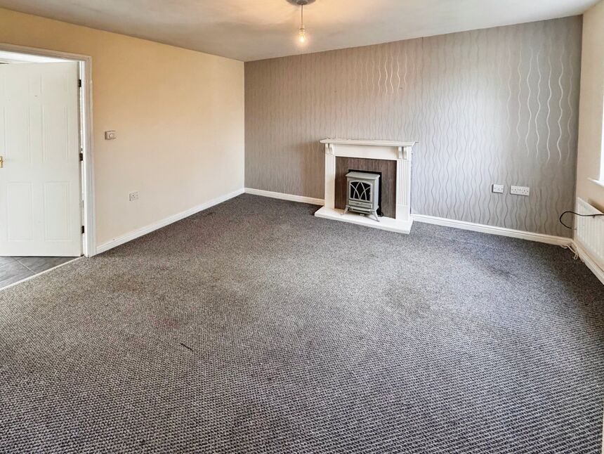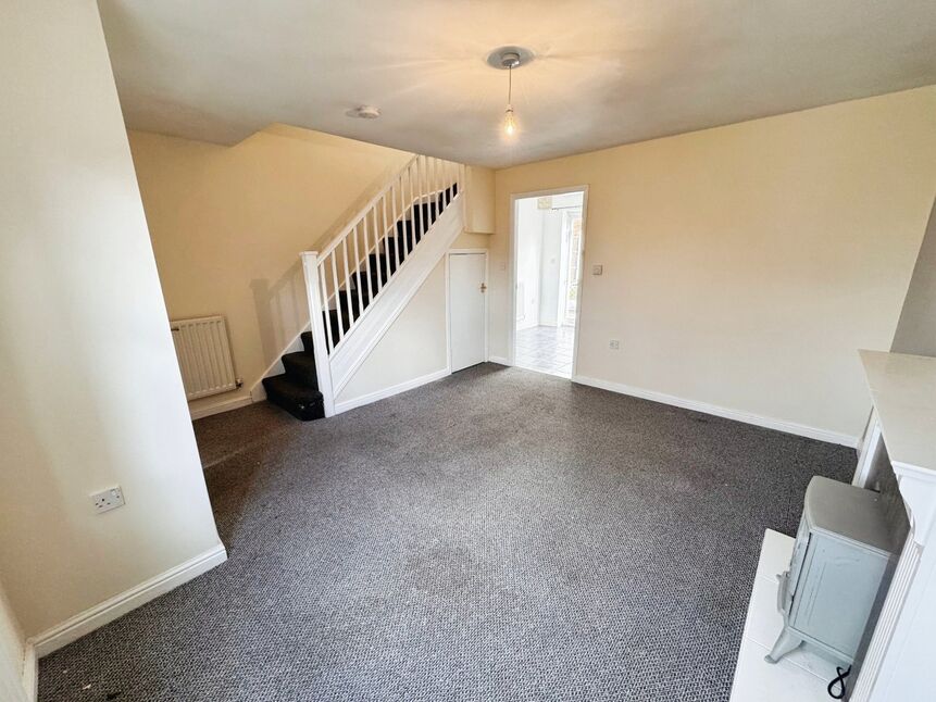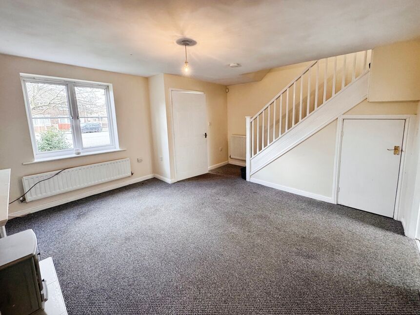 Double glazed window to front, gas effect fire with hearth and surround, stairs to first floor, radiator and carpet.