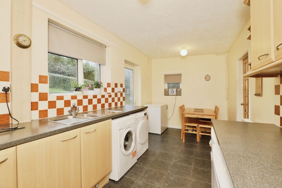 The kitchen diner is fitted with wall and base units with contrasting worksurfaces and tiled splashbacks, a sink and drainer, electric oven with gas hob, a central heating radiator, plumbing, space for fridge freezer, rear and side facing PVCu double glazed windows and a rear facing PVCu double glazed door.