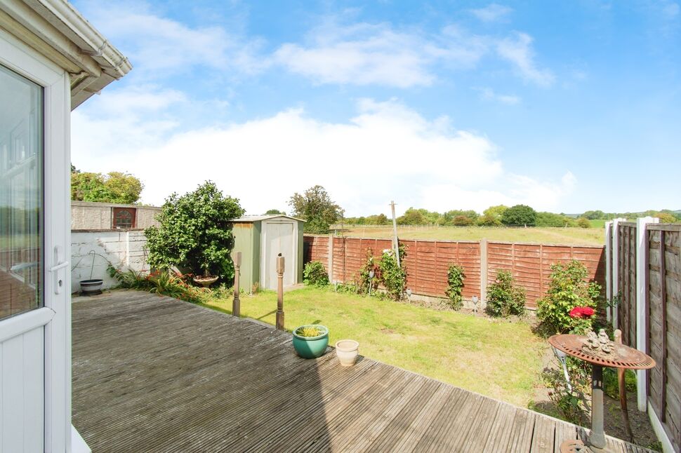 The front garden is enclosed with off road parking. The rear garden is enclosed, laid to lawn with a decked patio, planted borders, a garden shed and views over greenery.