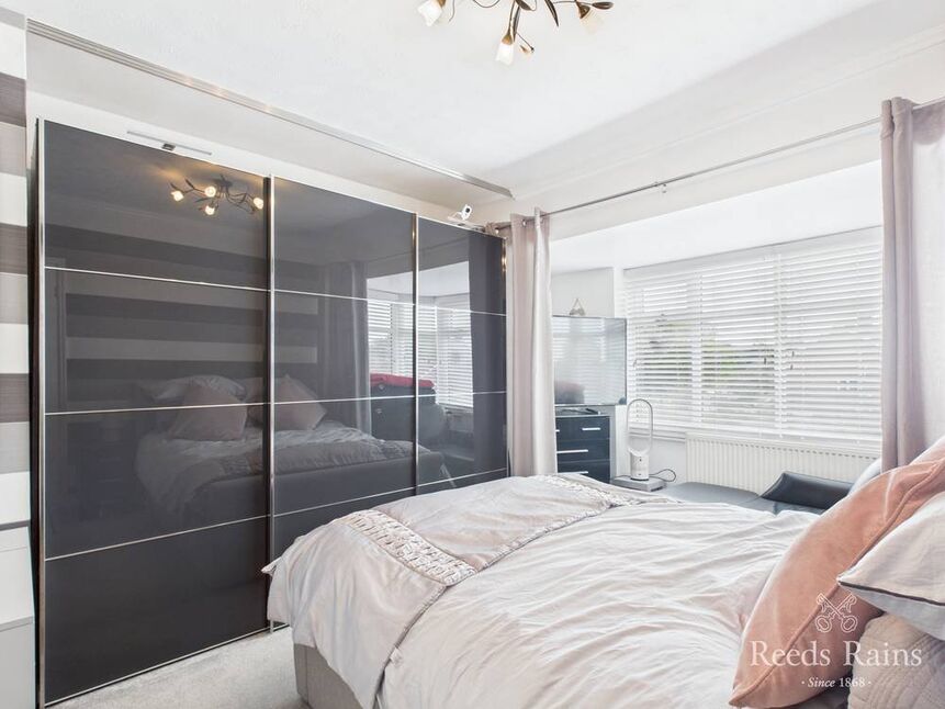 Double glazed bay window overlooks the front elevation. Radiator and fitted wardrobes.