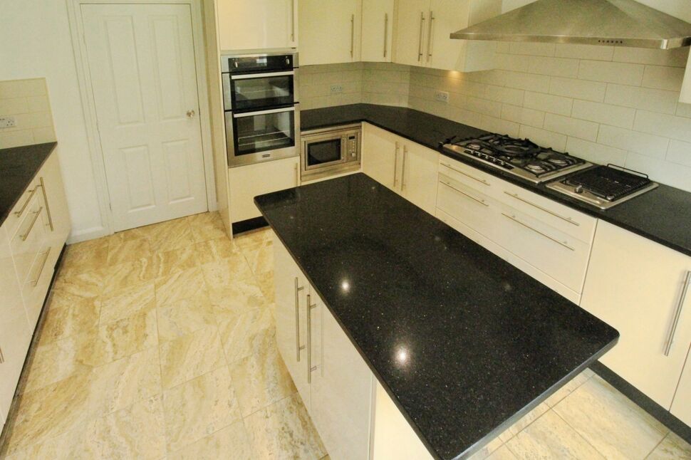 Side facing double glazed UPVC door giving access to the side driveway and two double glazed windows, radiator, neutral decor, wall & base units, complimentary worktops, sink & drainer, washing machine & dryer, tiled flooring.