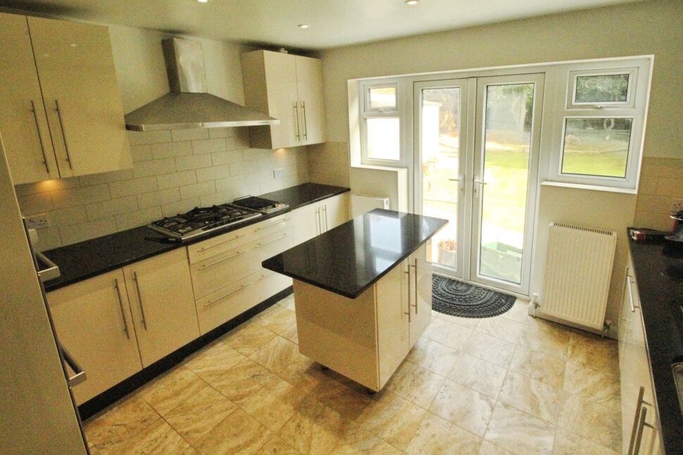 Rear facing double glazed patio doors giving access to the private rear garden, two radiators, neutral décor, modern fitted kitchen with a good selection of wall & base units, complimentary work surfaces, sink & drainer, 5 ring gas hob & warming plate, overhead extractor, oven, integrated dishwasher, microwave and fridge freezer, tiled flooring.